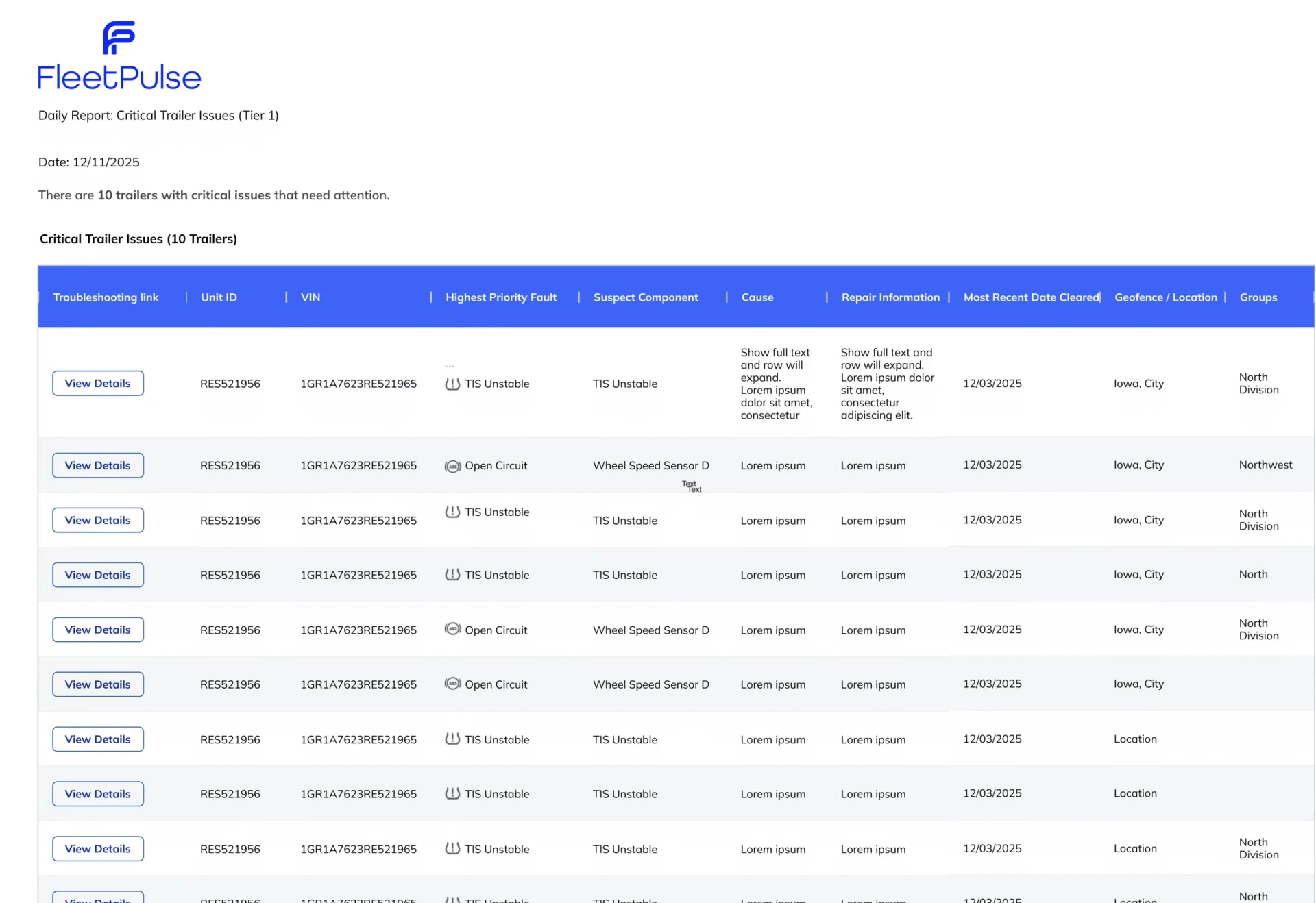 Your FleetPulse email reports have been redesigned to be scannable and actionable. The new format makes it easier to identify what needs attention, and every section now includes a “View Details” link that takes you directly to the relevant information in the platform.