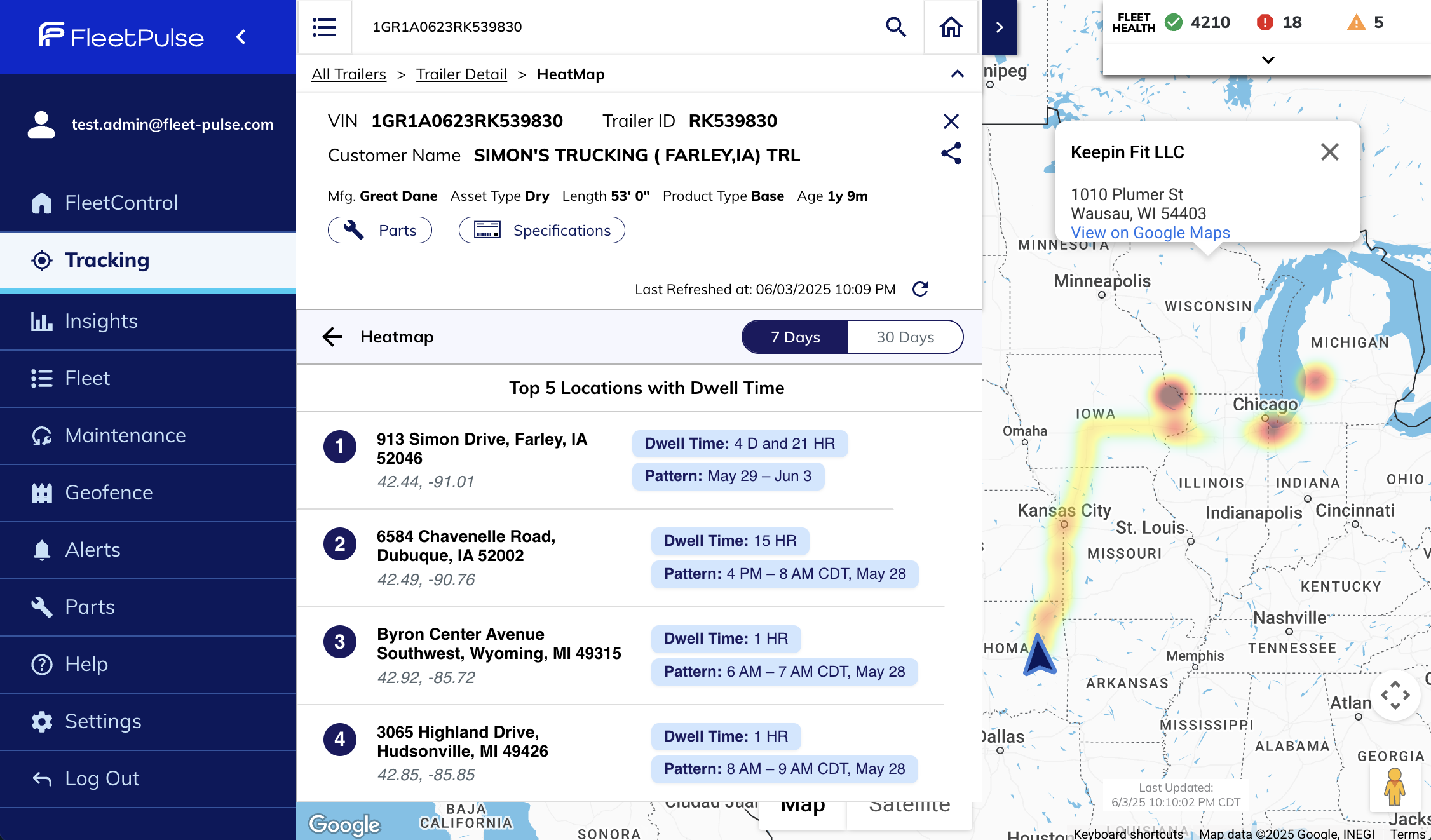 FleetPulses’s utilization insights reveal exactly where your efficiency opportunities hide. With precise dwell tracking and loaded miles analysis, you can rightsize your fleet based on actual performance data, eliminate unnecessary purchases, and squeeze maximum revenue from every trailer in your operation.