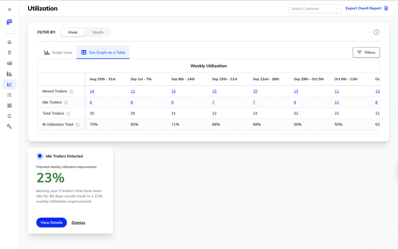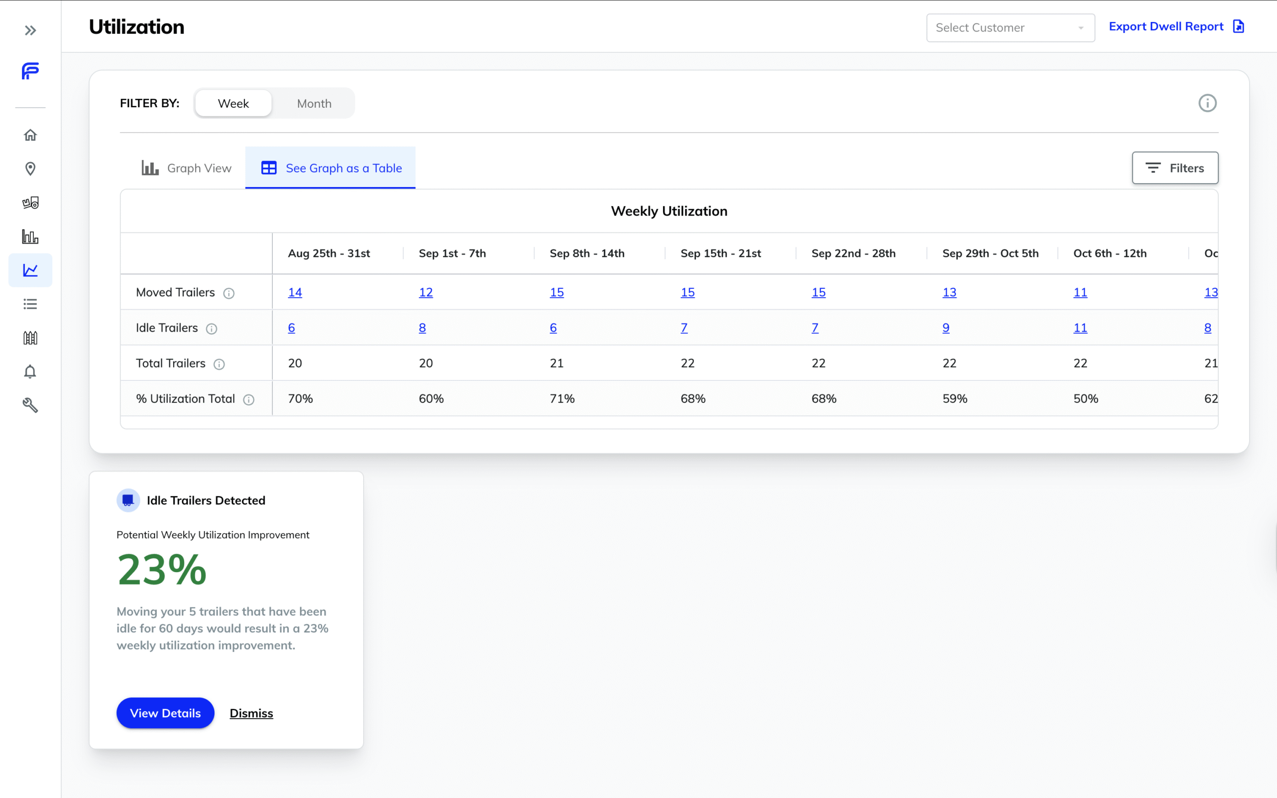 • A graph showing moved trailers vs. idle trailers over your selected timeframe (weekly or monthly)