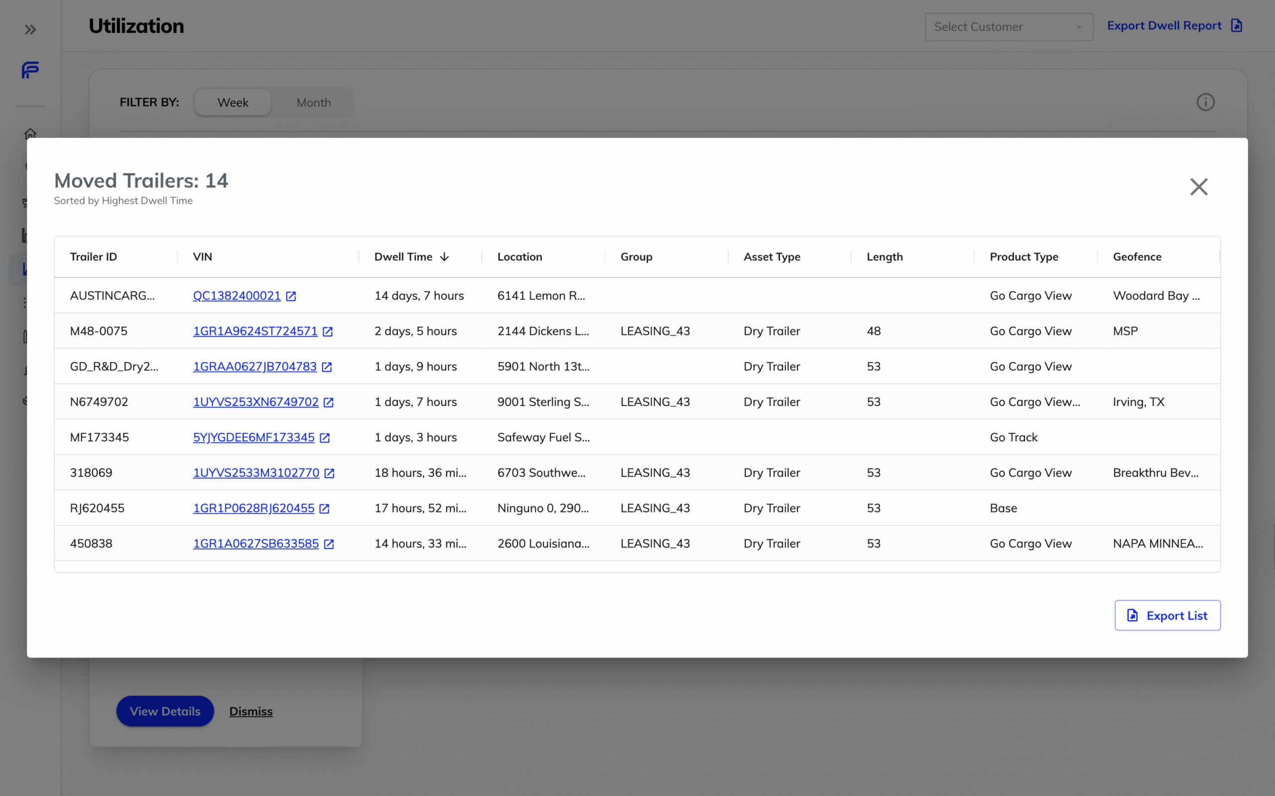 Drilldown Into Details: Go beyond the numbers. Click any data point to drill down into specific trailers, view dwell times, locations, and identify exactly which assets need attention.